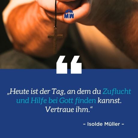 Psalm 118, 5-6: „In auswegloser Lage schrie ich zum Herrn: „Hilf mir!“ Er holte mich aus der Bedrängnis heraus und schenkte mir Freiheit. Der Herr ist auf meiner Seite, und ich brauche mich vor nichts und niemandem zu fürchten. Was kann mir ein Mensch schon antun?“