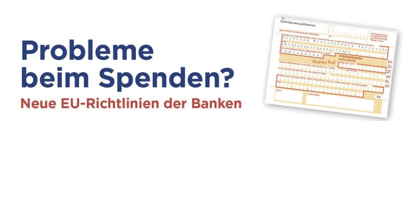 Jetzt gab es neue EU-Richtlinien bei Banküberweisungen. Diese führen leider manchmal dazu, dass Überweisungen blockiert werden – etwa wenn der Empfängername in Großbuchstaben geschrieben ist oder Banken eine besondere Zusicherung vom Spender verlangen. Jemand erzählte, dass er deshalb seinen Zehnten nicht überweisen konnte.